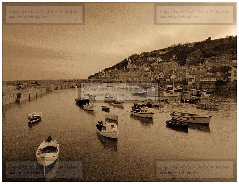 06100255(8.5x11), Mousehole Harbour as the sun sets behind the village